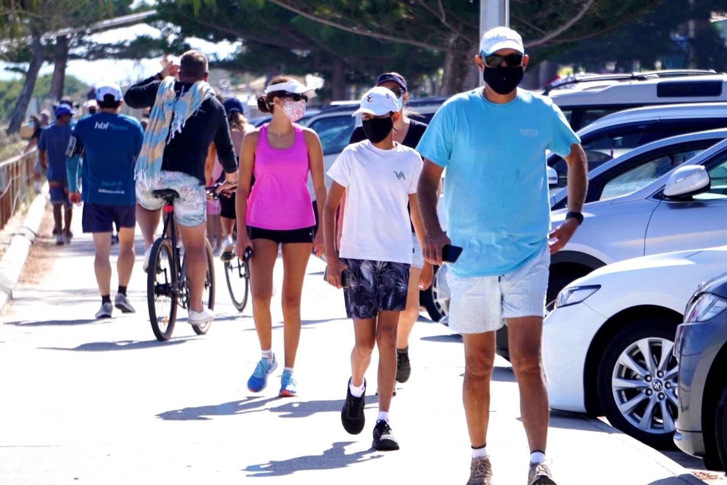 Police officers patrolling scarborough beach near perth, australia, on sunday after officials announced a lockdown.
